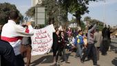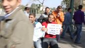 Protestors marching for Mubarak imitating the chants heard in Tahrir, only this woman gets it wrong, chanting "we'll leave" (the revolutionists, of course, chanted "he'll leave / we'll not leave")