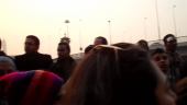 protesters holding Al Tahrir News paper, with the picture of the blue bra girl in the front page. The headline says Kazeboon "Liars"